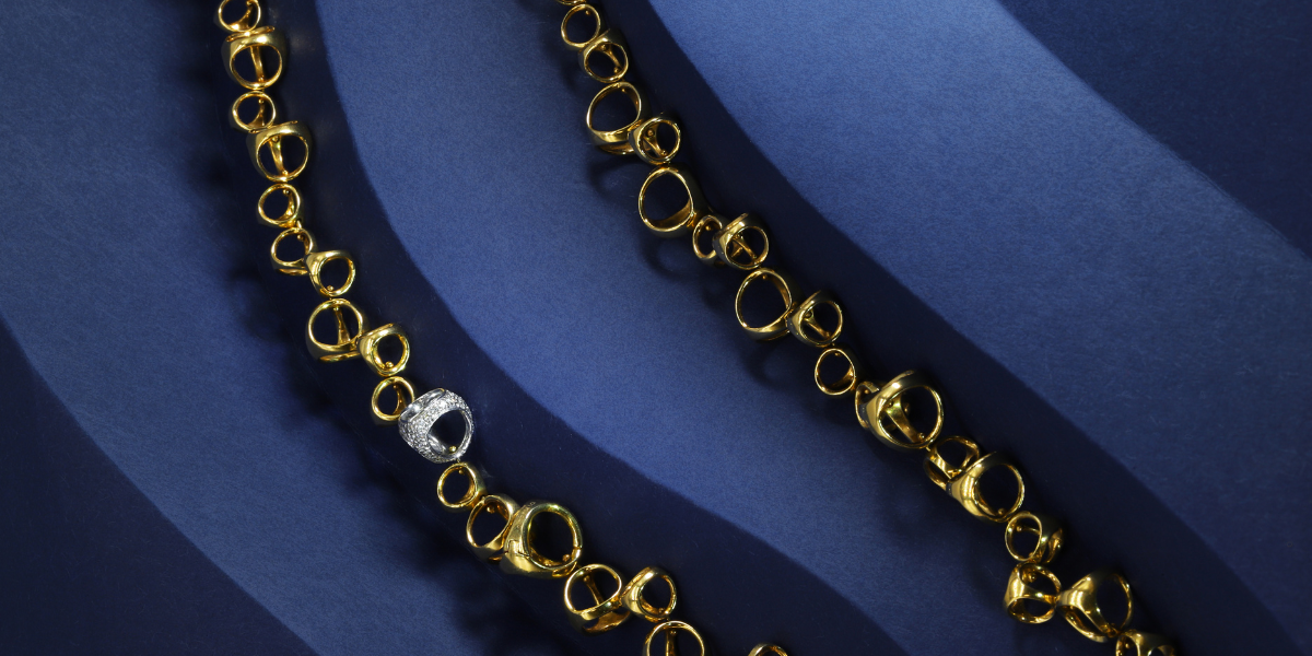 Ken Bolan and Marinette Domon: a white gold diamond 'Touche de Soie' necklace