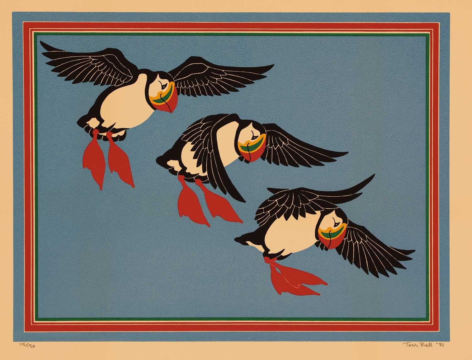 Puffin and swans - slight handling creases, but generally in good order. Both on thick wove paper. No sign of staining.