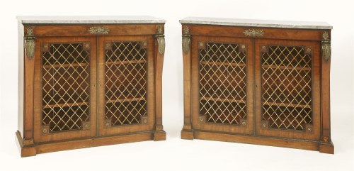 Missing block to pilaster strip on one of the cabinets, above the plinth, marble scratched and chipped, colour fair.
