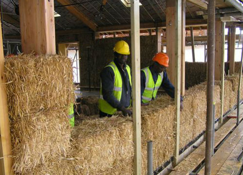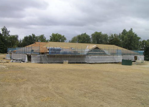 Planning permission was granted in 2007 and the current building was designed, built, and officially opened in 2008. The opening ceremony was hosted by HRH Princess Michael of Kent. The building’s timber frame was sourced from managed sustainable forests in Scandinavia and filled with tightly packed, locally sourced straw bales, which were compressed and held in place under a sustainable cedar-shingle roof. At the time of opening, it was the largest straw bale building in Europe and was given a sustainability award from the RICS.