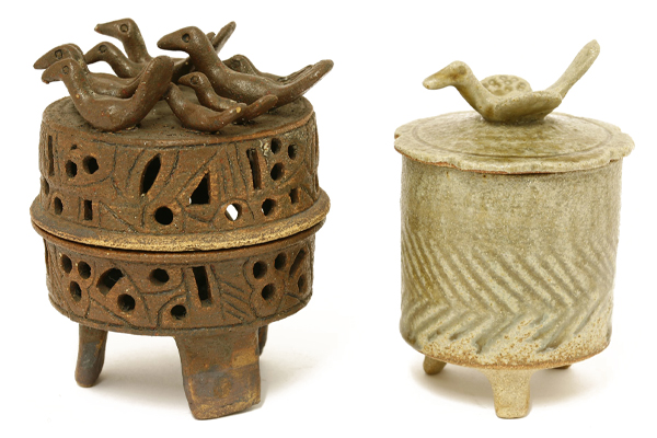A a pierced stoneware casket and pot by Ian Godfrey sold for £600 as part of the collection of the Hackney ceramicist Sally Dawson (1927-2017) offered in October 2017.