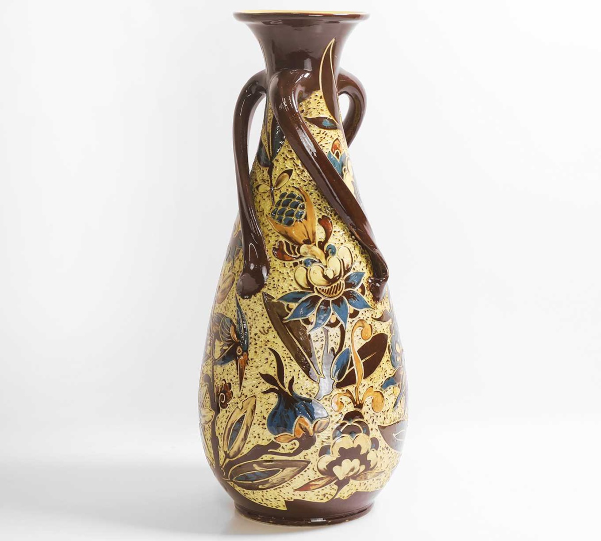 C H Brannam Pottery, by James Dewdney | Left: a tapered form vase, dated 1901 (£300-400), Right: a floor vase, dated 1896 (£400-500)